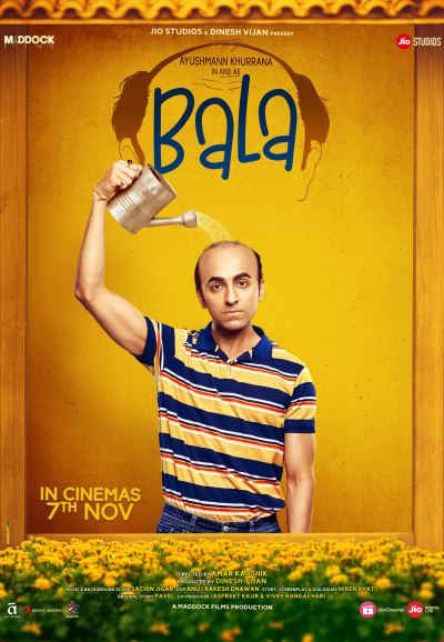 Bollywood movie Bala (2019) is Directed By Amar Kaushik. Staring: Ayushmann Khurrana, Bhumi Pednekar, Yami Gautam, Seema Pahwa, Saurabh Shukla